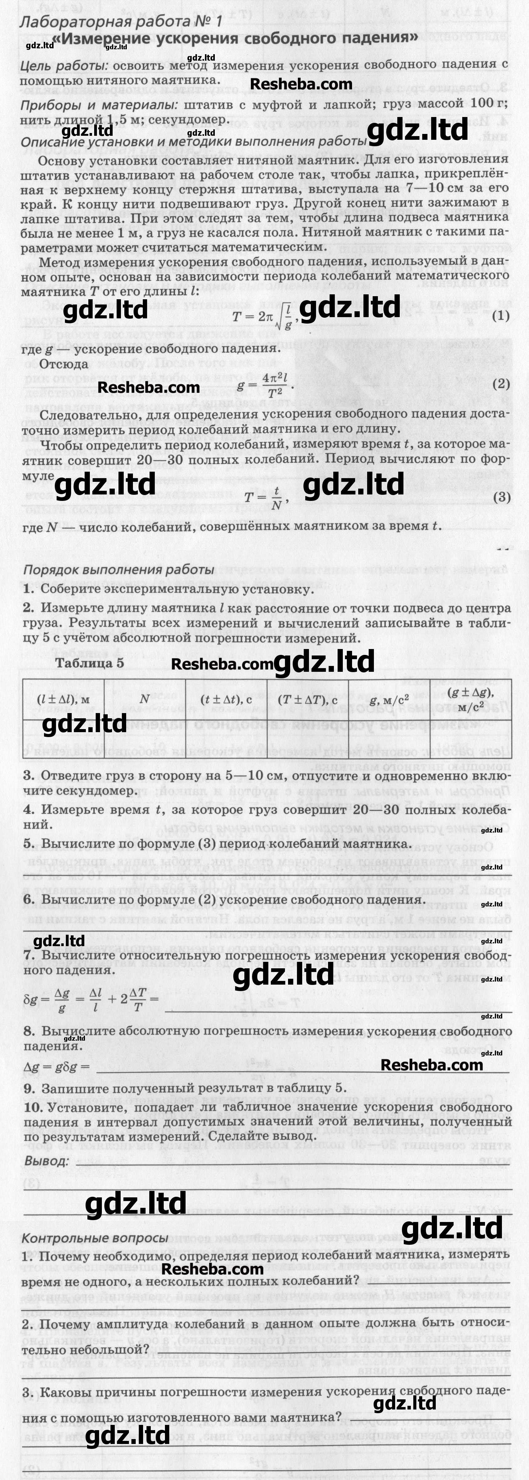 ГДЗ Физика 10 класс Пурышева, Степанов - Тетрадь для лабораторных работ «Дрофа»