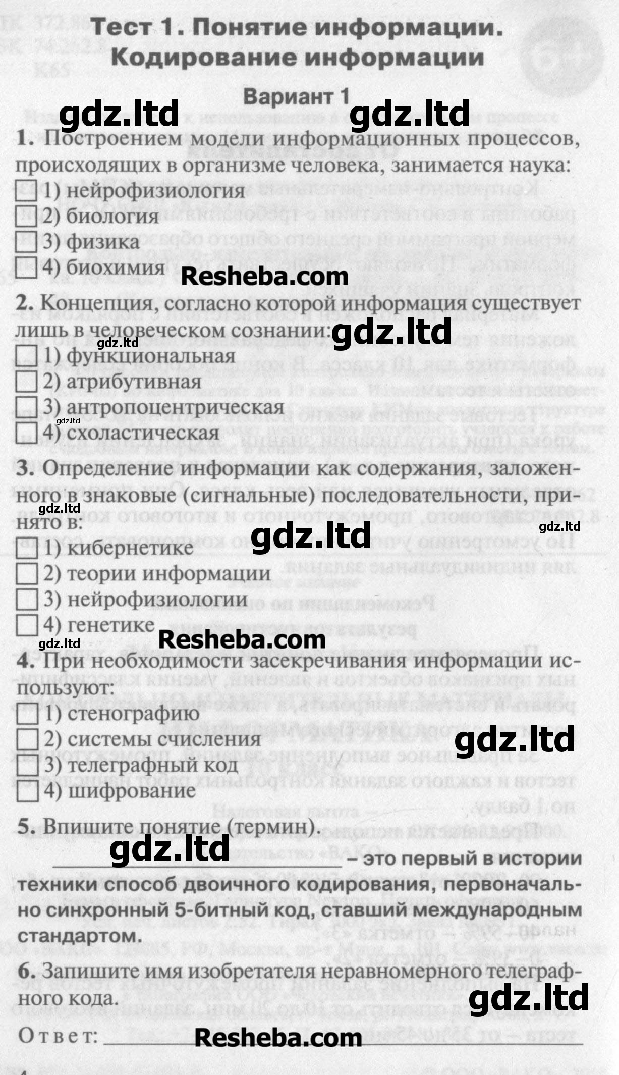 ГДЗ Информатика 10 класс Масленикова - Контрольно-измерительные материалы «Бином»