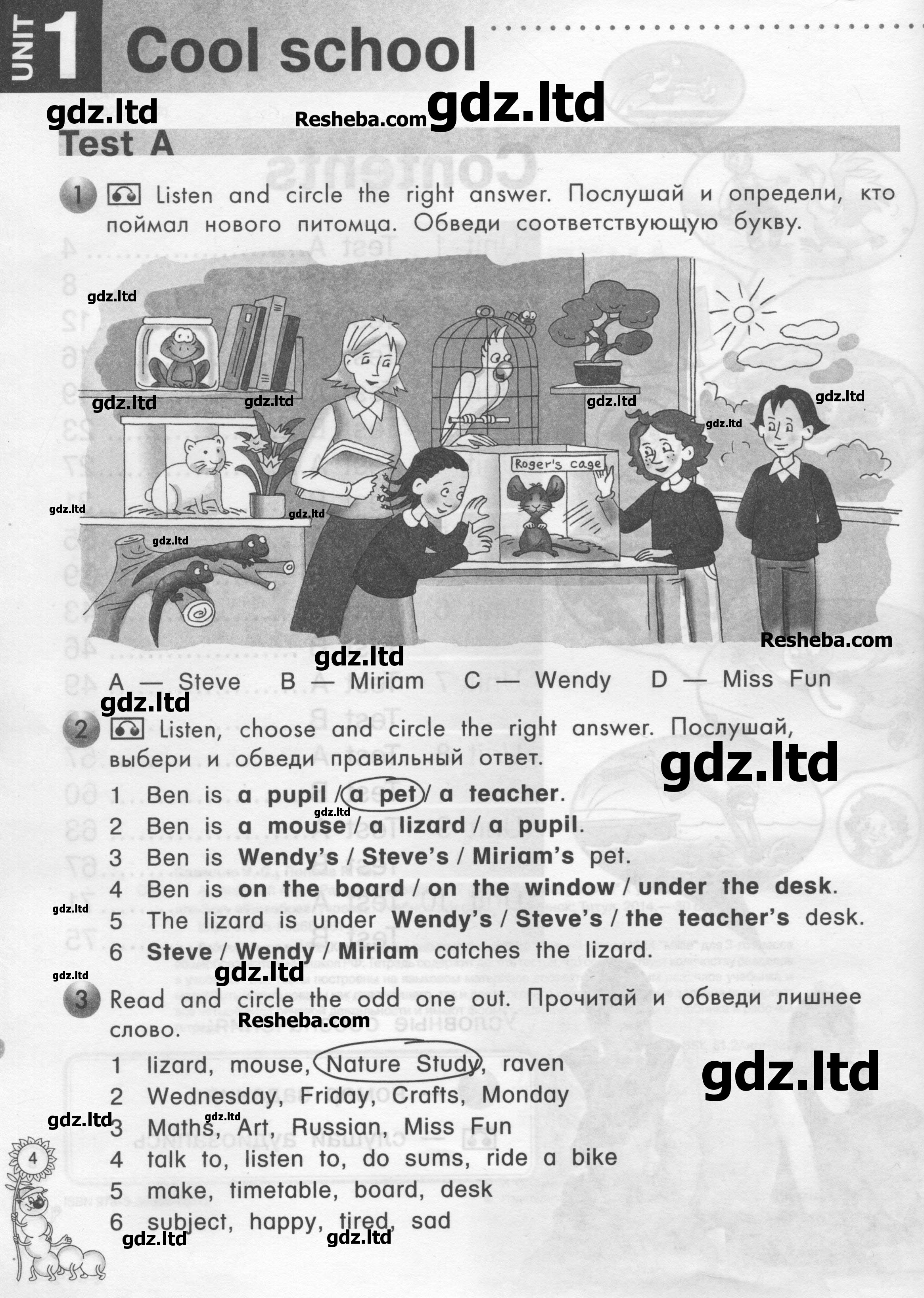 На семидесяти восьми страницах содержатся тестовые работы, которые распределены по десяти изучаемым в этом году разделам. Каждая работа имеет по два варианта, так что тщательная проработка каждого из них поможет полноценно усвоить текущую информацию. ГДЗ по английскому языку 3 класс Славщик содержит проверенные и подробные ответы по всем номерам, что облегчит подготовительные мероприятия.