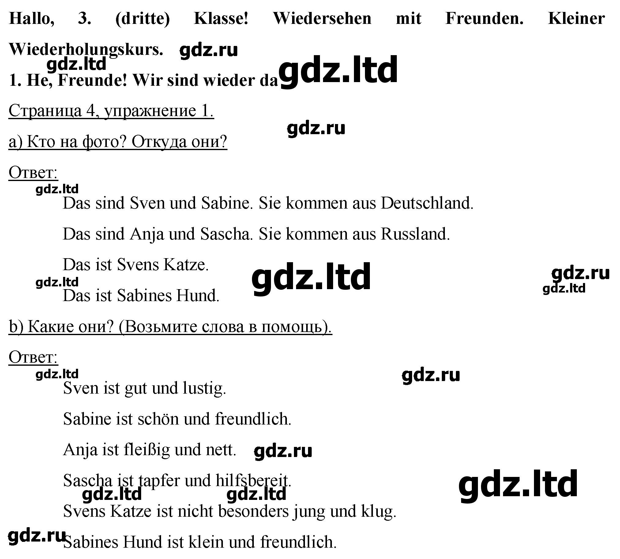 Структура пособия полностью идентична оригиналу, поэтому можно быстро и без проблемно найти нужное упражнение. А благодаря подробным решениям в ГДЗ по немецкому языку 3 класс Бим любое затруднение с выполнением д/з становится легко разрешимым. Авторы предоставили так же и перевод к текстам и заданиям, что облегчит понимание их сути.
