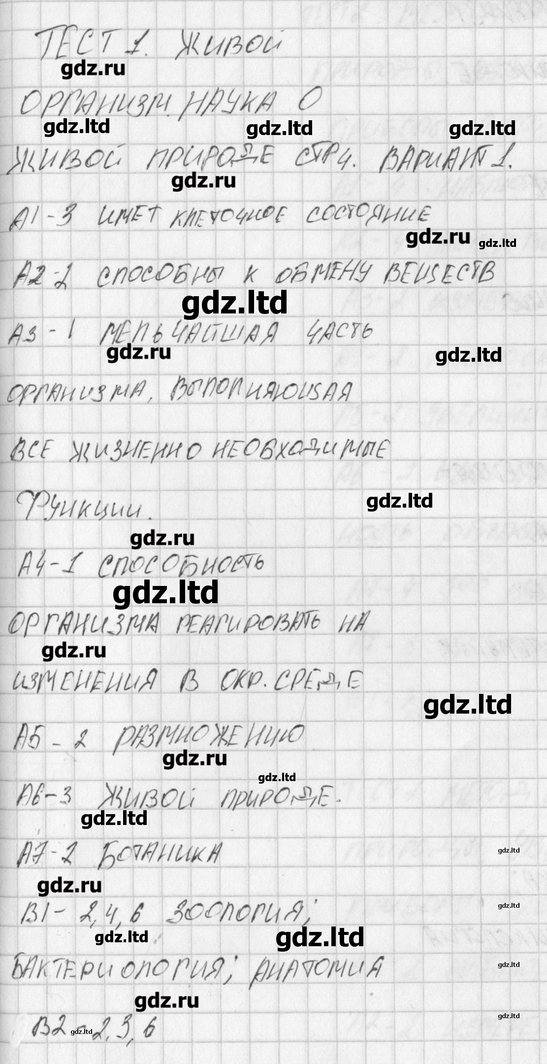 ГДЗ Биология 5 класс Богданов - Контрольно-измерительные материалы «ВАКО»