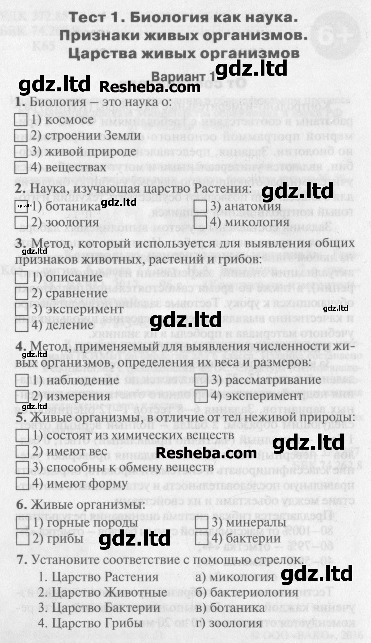 ГДЗ Биология 6 класс Богданов - Контрольно-измерительные материалы «ВАКО»