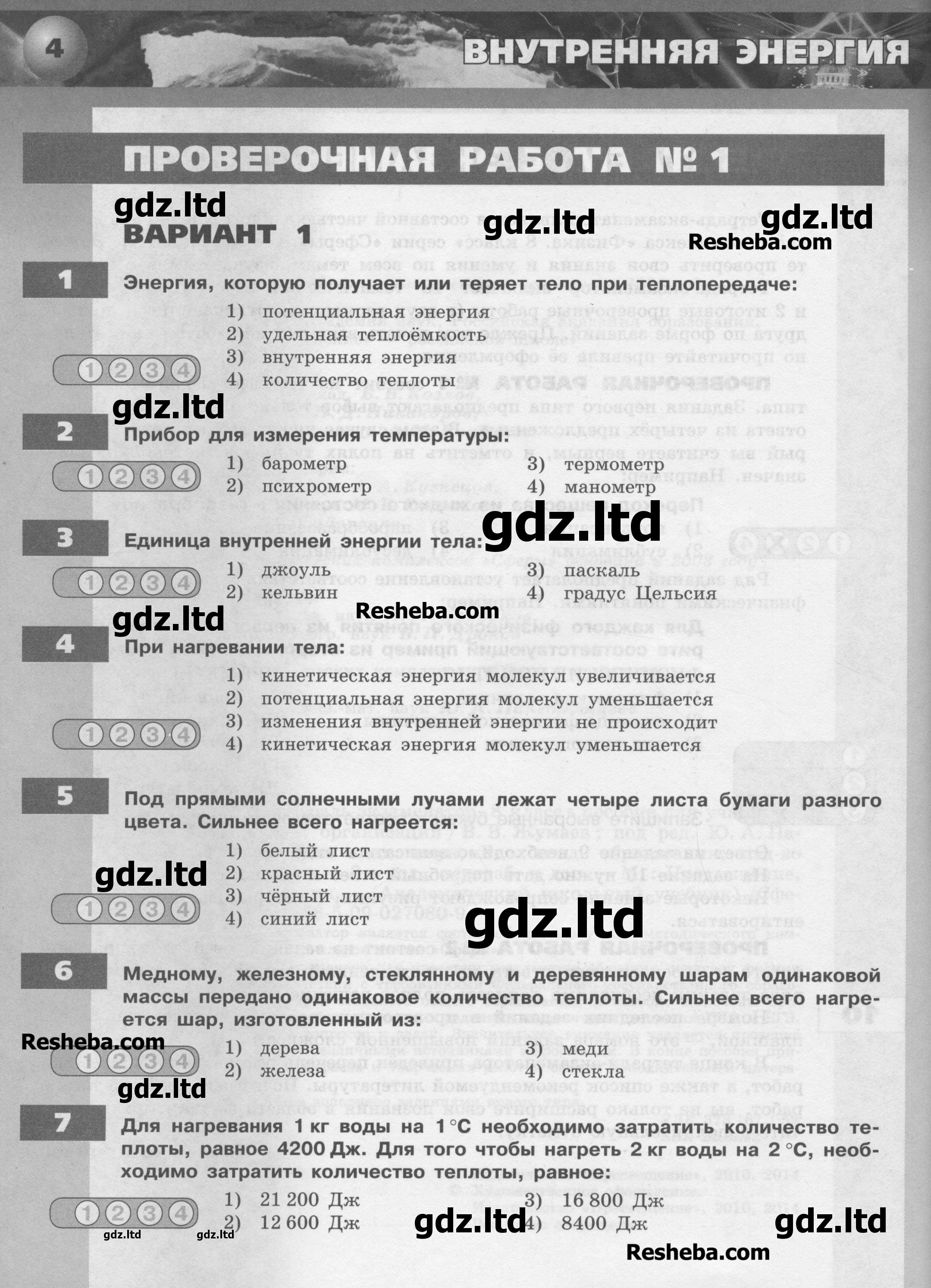ГДЗ Физика 8 класс Жумаев - Тетрадь-экзаменатор «Просвещение»
