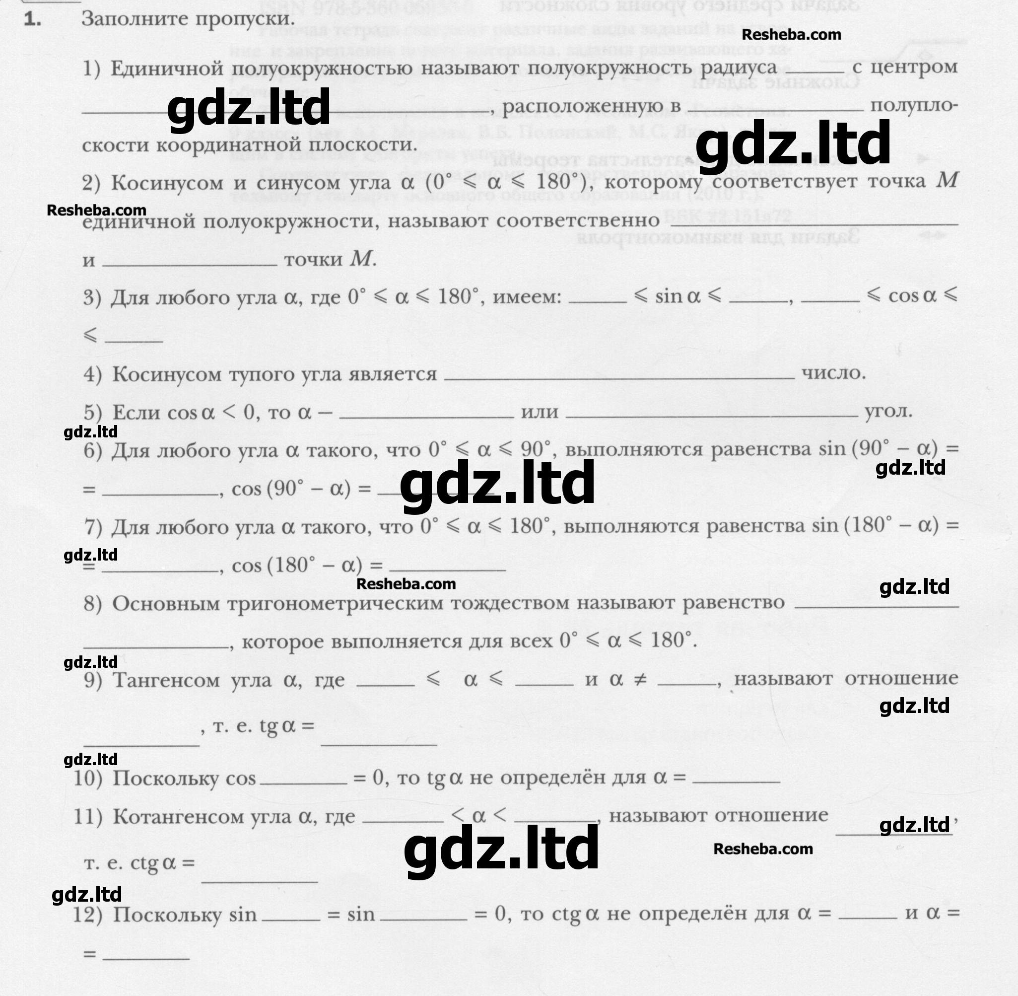 ГДЗ Геометрия 9 класс Мерзляк, Полонский, Якир - Рабочая тетрадь «Вентана-Граф»